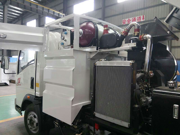 低壓沖洗:利用離心水泵的低壓力、大流量對路面進(jìn)行沖洗作業(yè),作灑水車用。